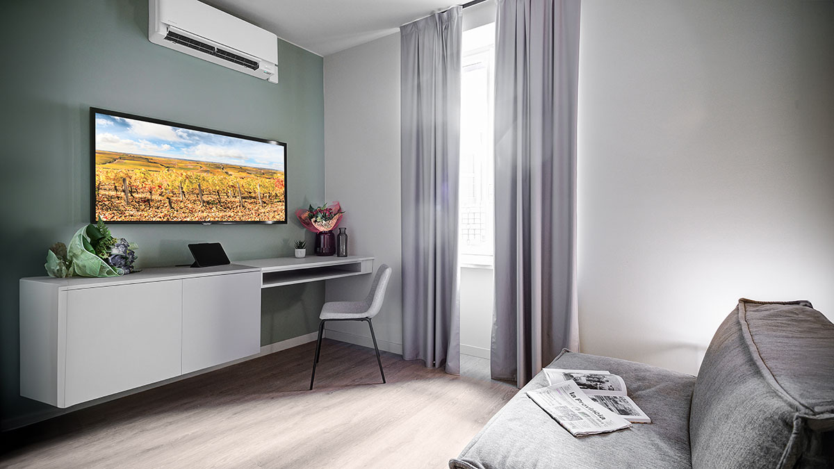 Che si tratti di un viaggio di lavoro o di piacere, scegliendo questa soluzione avrai a disposizione lo spazio giusto per i tuoi momenti di riposo. Tutto all’interno di un ambiente dotato di tutti i servizi (2 smart TV, aria condizionata, frigobar, asciugacapelli e connessione Wi-Fi) e finemente arredato per soddisfare le tue esigenze di relax.